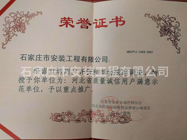 河北省質量誠信用戶滿意示范單位